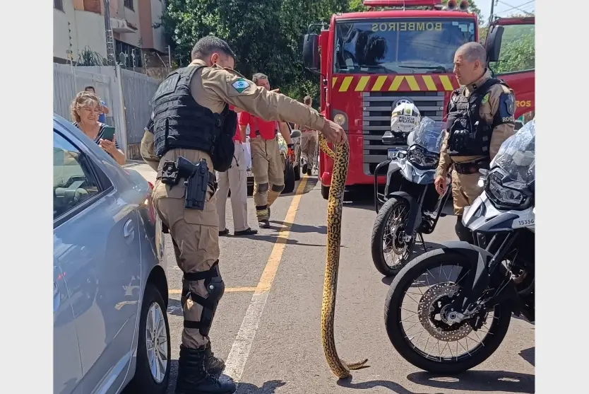 De acordo com a PM, uma equipe da Rocam (Rondas com Motos) estava em patrulhamento quando uma mulher pediu apoio em virtude de haver uma cobra na rua. Os militares encontraram o animal e realizaram a captura. Na sequência, o Corpo de Bombeiros fez o encaminhamento da serpente para o escritório regional do Instituto Água e Terra (IAT) em Umuarama.
