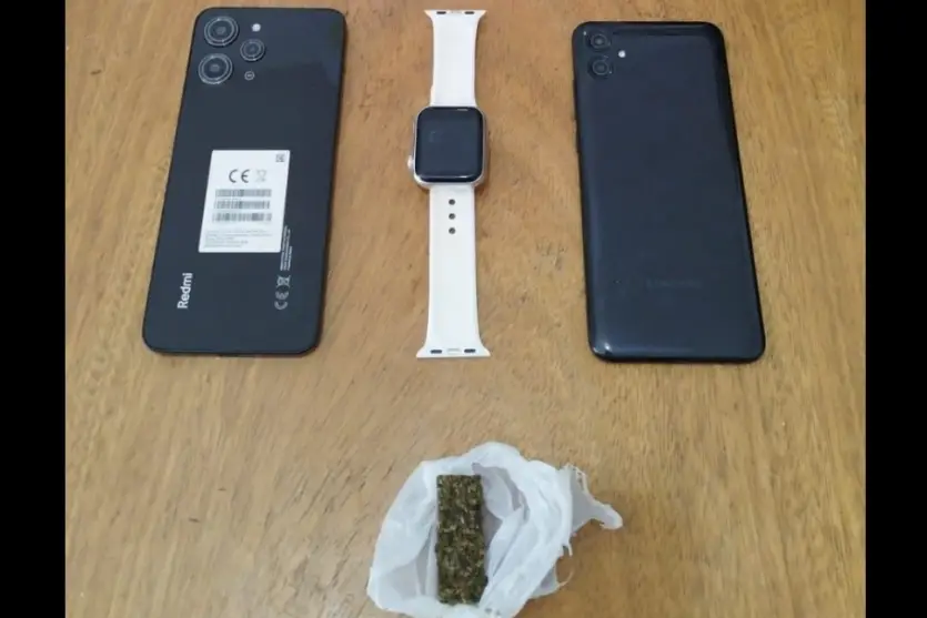 O Samsung A3 de cor preta foi reconhecido pela vítima (um homem de 74 anos) como o item furtado. Além disso, na posse do suspeito foram encontrados uma pequena porção de maconha pesando aproximadamente 4 gramas (para uso pessoal), um celular danificado modelo Redmi 12 e um relógio Apple Watch Série 5, sem carregador.