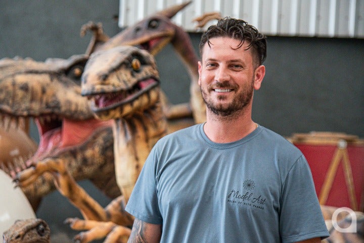 Tiago Junior Evangelista produziu algumas das estátuas de dinossauros que estão em exibição no Museu de Paleontologia de Cruzeiro do Oeste