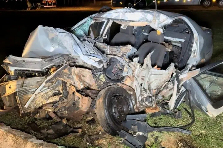 Um jovem de 28 anos morreu na madrugada desta sexta-feira (1º) em uma colisão frontal com uma carreta no quilômetro 452 da BR-277, em Laranjeiras do Sul, região central-sul do Paraná. Angelo Fabio Bigochinski, que dirigia um Siena, invadiu a pista contrária e colidiu com o veículo de carga, segundo imagens das câmeras de segurança acopladas à carreta, que pertence a uma transportadora.