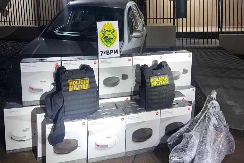A Polícia Militar (PM) apreendeu, na noite desta segunda-feira (4), diversos robôs aspiradores e patinetes elétricos suspeitos de descaminho, após abordagem a um Ford Fiesta no município de Tapira. O veículo era ocupado por dois homens, que também foram encaminhados ao destacamento policial.