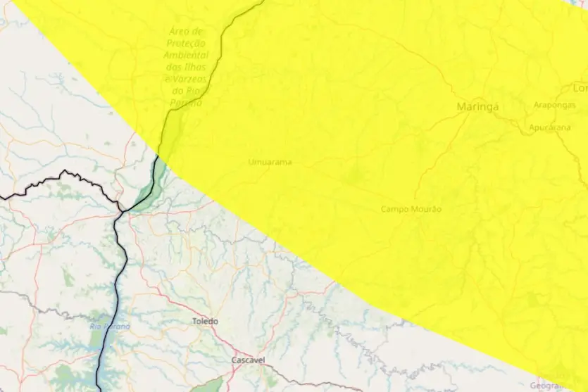 O Instituto Nacional de Meteorologia (Inmet) emitiu nesta sexta-feira (8) um alerta amarelo de chuvas intensas para diversas cidades do Paraná, incluindo Umuarama e região. O aviso entrou em vigor às 10h e pode permanecer até às 23h59 de hoje.