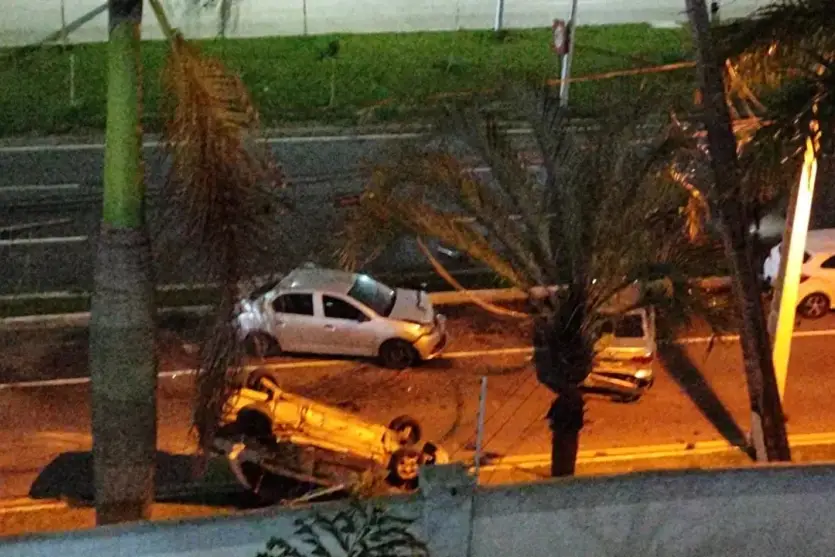 Um dos carros atingidos foi um Ford Fiesta que acabou sendo arremessado contra um posta, capotou e ficou no meio da pista da Linha verde até que um guincho o recolhesse.