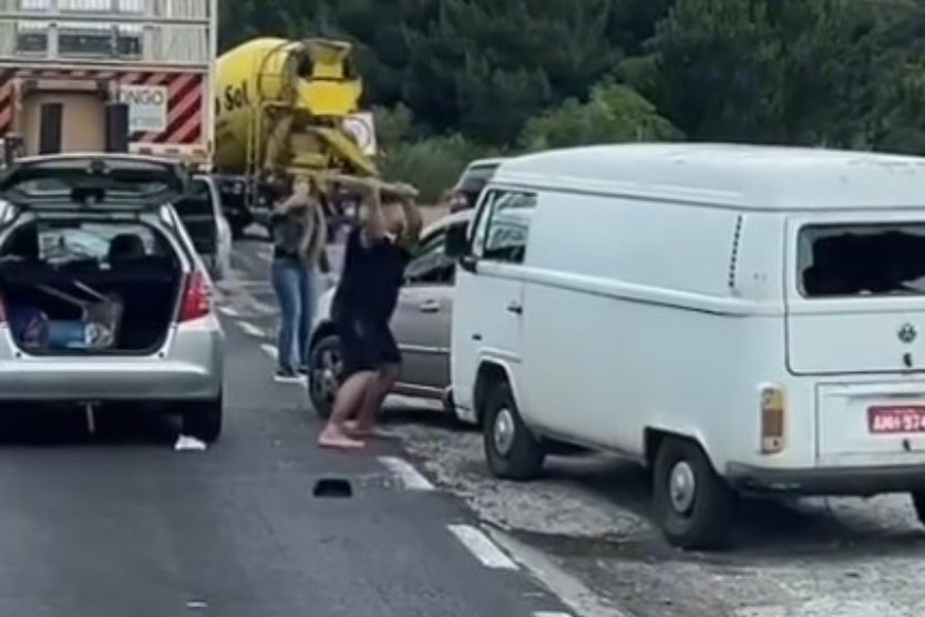 Motorista tem ataque de fúria e usa machado para danificar veículos em rodovia