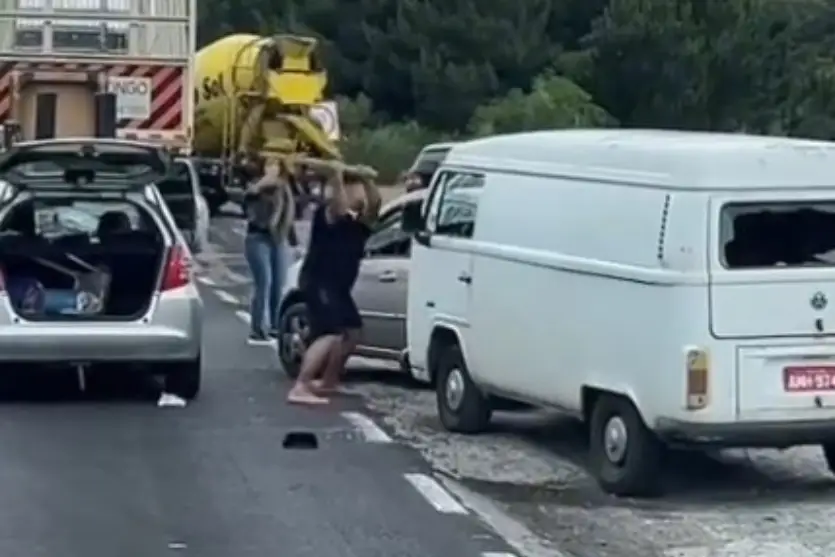 Uma situação de trânsito pode ser a causa da fúria de um motorista na manhã desta quarta-feira (13), no trecho da PR-418, altura do município de Almirante Tamandaré, Região Metropolitana de Curitiba. Totalmente descontrolado, o homem usou um machado para danificar vários veículos que estavam no local da ocorrência.