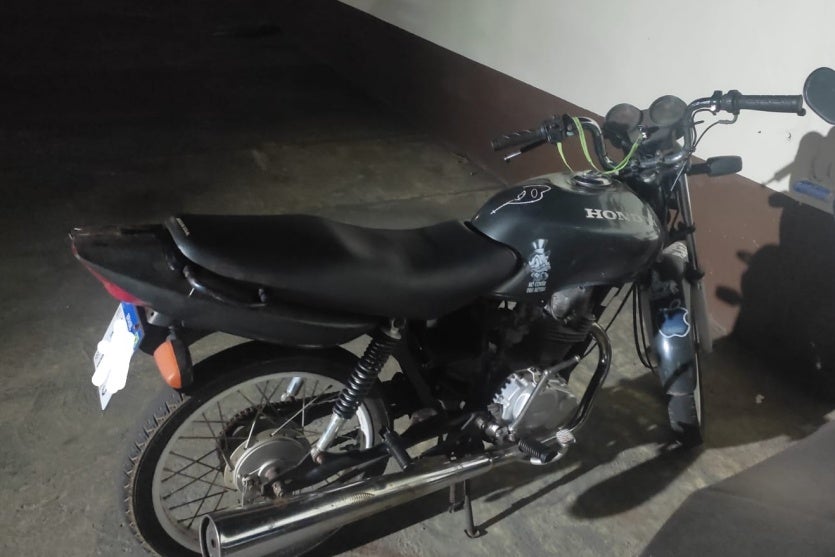 Em nota enviada à imprensa, a PM informou que, durante patrulhamento, os policiais avistaram dois indivíduos em uma Honda CG 125 Titan, de cor cinza, e suspeitaram da autenticidade do emplacamento, que parecia ser falso.
