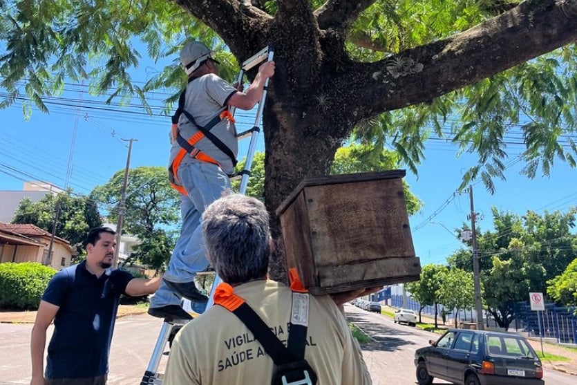 O plano é aumentar gradativa e fortemente a quantidade de caixas para atrair as abelhas com ferrão. “Estamos em processo de produção de mais 65 dispositivos para serem instalados já a partir de janeiro de 2025. As abelhas são atraídas por um composto de cera alveolada e feromônio, que é à base de própolis e álcool. Os apetrechos devem ser instalados nos locais com maior número de denúncias de ataques de abelhas com ferrão e em pontos identificados pelos agentes da Vigilância Ambiental”, especifica o engenheiro agrônomo Fabio Cezar Pereira Souza.