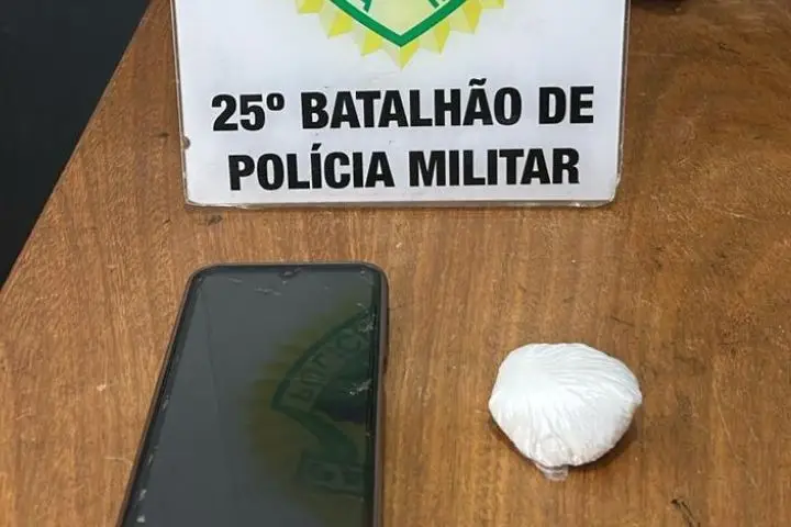 Ao perceber a aproximação da viatura policial, o jovem tentou se desfazer de uma embalagem, arremessando-a em um gramado próximo. A ação foi observada pelos agentes, que prontamente realizaram a abordagem.