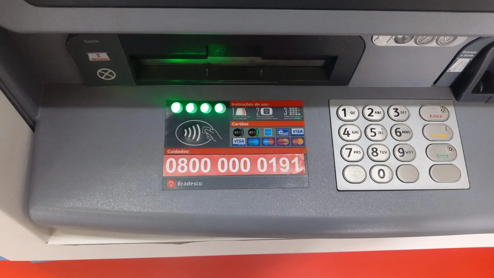Além disso, adesivos com números de telefone 0800 foram encontrados colados nos caixas. Esses números são uma armadilha para que clientes desavisados entrem em contato, fornecendo informações pessoais e bancárias aos estelionatários.