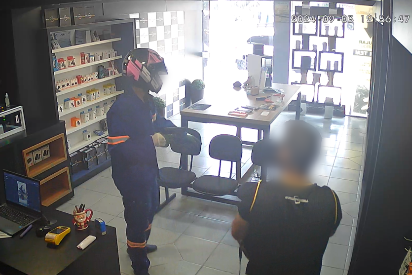 Durante o assalto, um dos criminosos, armado com uma pistola, abordou os funcionários da loja, enquanto o comparsa aguardava em uma motocicleta para a fuga. As imagens das câmeras de segurança do estabelecimento foram cruciais para a identificação dos envolvidos.