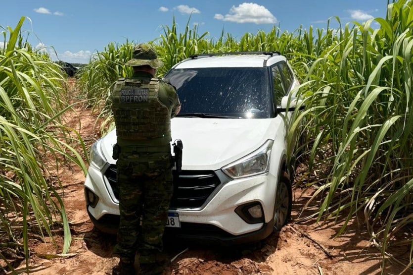 O BPFron divulgou que uma equipe fazia patrulhamentos quando recebeu informações sobre um veículo que estava em situação de abandono na plantação. Os policiais foram até o local indicado e encontraram um Hyundai/Creta.