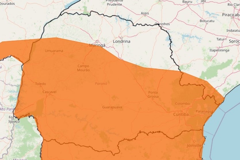 O Inmet (Instituto Nacional de Meteorologia) publicou, na manhã desta quinta-feira (28), um alerta laranja para ocorrências de temporais em grande parte do Paraná – o que inclui Umuarama e municípios vizinhos.