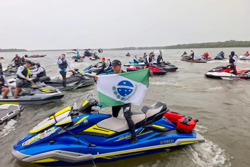 O grupo com mais de 160 jestskis que partiu quarta-feira (27) de Rosana (SP) chegou às 17h desta quinta-feira na Internacional Boat Show, evento ligado ao turismo náutico, em Foz do Iguaçu, na região Oeste do Paraná. No total, a expedição navegou 418 quilômetros pelas águas do Rio Paraná, parando em municípios com prainhas de água doce, como Porto Rico e Porto Camargo.