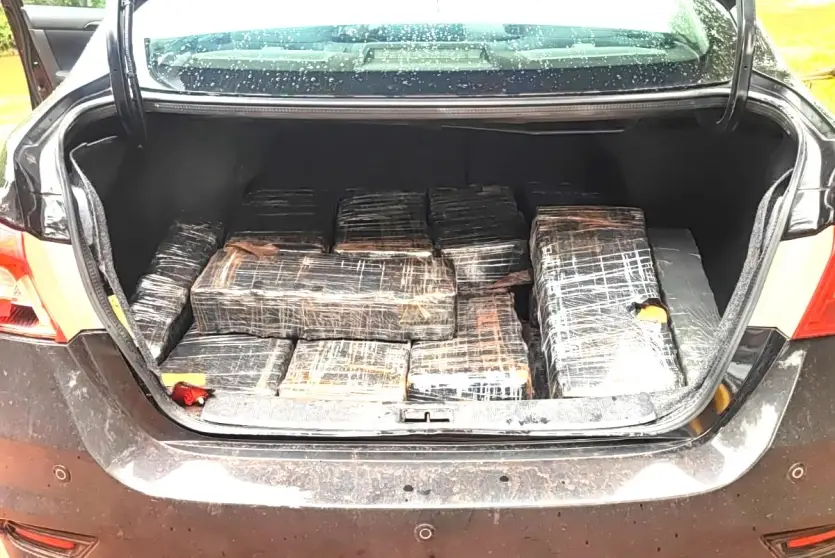 Os policiais apreenderam a droga e o veículo, mas o suspeito não foi localizado. Dentro do Nissan foram encontradas duas placas falsificadas de veículos com origens nos estados de São Paulo e Santa Catarina.