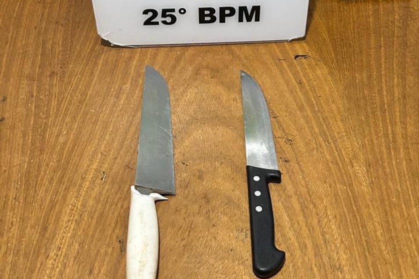 Ainda conforme o relato, o jovem causou danos em diversos objetos da casa e atacou populares que tentaram intervir, ameaçando-os com duas facas e arremessando pedras.