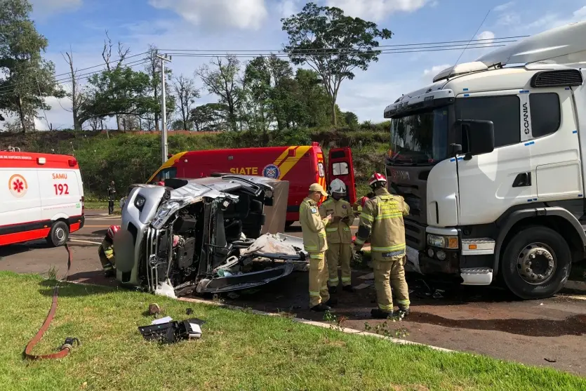 Uma mulher morreu e um homem ficou gravemente ferido após uma colisão entre uma carreta e uma caminhonete Hilux, na manhã desta segunda-feira (2), na PR-580, na saída de Umuarama para o distrito de Serra dos Dourados.