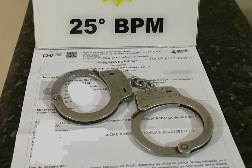 Os policiais constataram que em seu desfavor havia um mandado de prisão pelo crime de homicídio que foi cometido no município de Lapa/PR. Na sequência ele recebeu voz de prisão e foi encaminhado para a carceragem do Departamento Penitenciário (Depen) para que as demais providências cabíveis sejam tomadas.