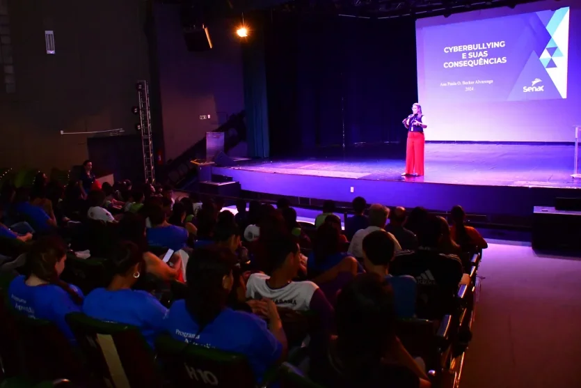 O crime é virtual, mas as consequências são reais. Com esta afirmação a secretária municipal de Assistência Social, Dayanne Paola Demozzi, abriu palestra sobre o combate ao cyberbullying na manhã desta terça-feira (3), no teatro do Centro Cultural Vera Schubert. A plateia, formada por adolescentes e jovens de instituições de ensino, de estágio e do Centro da Juventude, ouviram atentamente a abordagem e interagiram para tirar dúvidas durante as orientações.