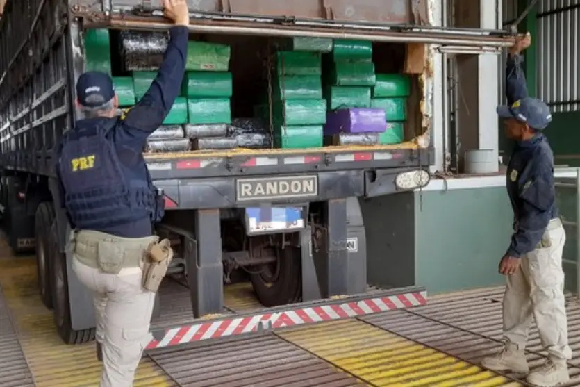 A Polícia Rodoviária Federal (PRF) apreendeu 1.738 quilos de maconha, na tarde desta quinta-feira (5), em Mandaguaçu, na região de Maringá, após uma abordagem a um caminhão bitrem na BR-376. A abordagem foi iniciada quando agentes da PRF perceberam que duas lanternas do veículo estavam danificadas, o que despertou a suspeita dos policiais.