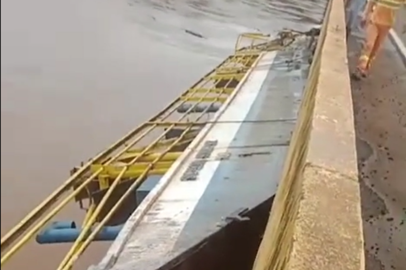 Vídeos mostram balsa enroscada após choque na ponte da PR-317