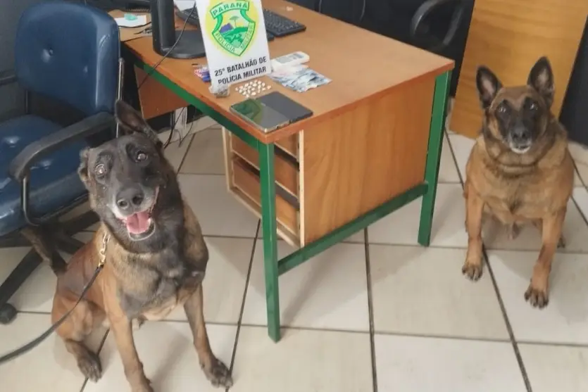 A PM foi até o endereço por volta das 9h. No local, os policiais flagraram duas pessoas na área externa da casa e uma terceira dentro do imóvel, sendo que uma delas estava com uma porção de maconha. Após a abordagem, os cães de faro Rock e Iron encontraram as 20 pedras de crack escondidas em uma lixeira, além de R$ 15 em dinheiro trocado. Já a maconha somou 6,5 gramas.