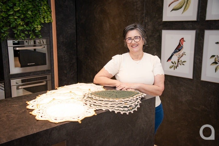 A artesã Sônia Krominski, 60 anos, moradora do Jardim Bandeirantes, em Umuarama, se dedica a essa arte, transformando linhas coloridas ou em tons neutros em peças que unem funcionalidade e sofisticação. Aprendida com a mãe, também crocheteira talentosa, a técnica que parecia apenas um passatempo revelou-se uma fonte de renda, há cerca de 20 anos.