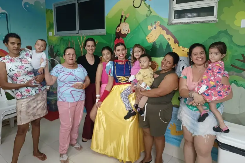 A advogada Francielly Foiani Ramirez Kramer, mais conhecida como ‘Branca de Neve’, encantou mais uma vez as crianças internadas na Pediatria da Associação Beneficente de Saúde do Noroeste do Paraná – Hospital e Maternidade Norospar, na manhã desta terça-feira (10). A voluntária levou presentes e doces e também fez a entrega de panetones doados.