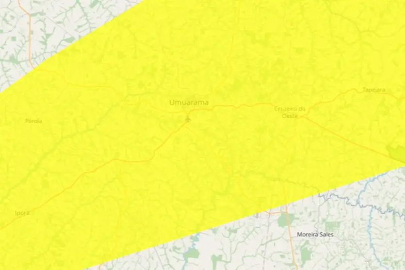 O Instituto Nacional de Meteorologia (Inmet) emitiu nesta sexta-feira (13) um novo alerta amarelo de tempestade para diversas cidades do Paraná, incluindo Umuarama e região. O alerta entrou em vigor às 10h de hoje e tem validade até às 10h deste sábado (14).
