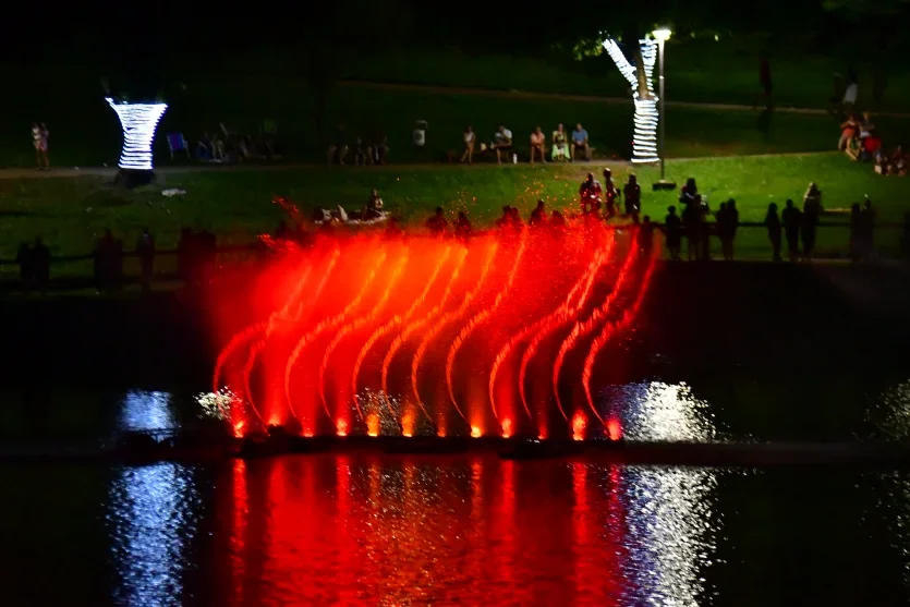 A noite de domingo (15) marcou a abertura das atividades no Lago Aratimbó e um grande público compareceu para a estreia do espetáculo Show das Águas Dançantes. “As atrações musicais ficaram por conta do Coral Canarinhos de Jesus, da Igreja Matriz São Francisco, e do Coral Municipal da Fundação Cultural. O clima estava bastante agradável e os visitantes puderam apreciar as primeiras apresentações do Show das Águas, que foram importantes para realizar os ajustes técnicos necessários para não haver atrasos. Lembrando que serão três sessões diárias: às 20h, 21h e 22h”, relata Pressinatte.