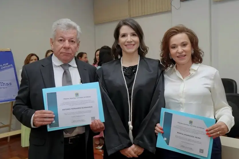 A Justiça Eleitoral de Umuarama diplomou, nesta segunda-feira (16), os eleitos nas eleições municipais de outubro, incluindo o prefeito, vice-prefeito, vereadores e suplentes até a terceira colocação. A cerimônia, que simboliza a conclusão do processo eleitoral, ocorreu na Sala do Tribunal do Júri e foi conduzida pela juíza eleitoral da 89ª Zona Eleitoral, Sandra Lustosa Franco.