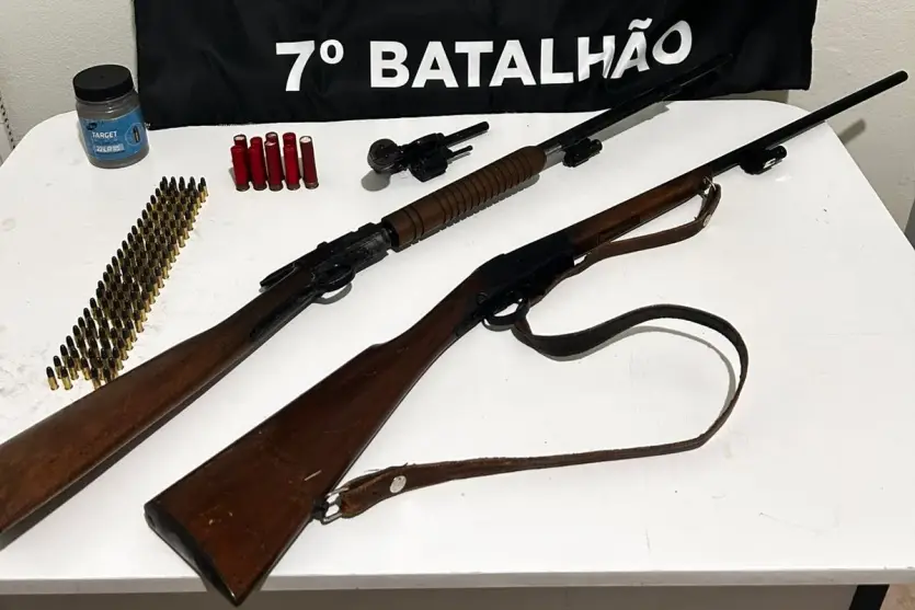 As armas e munições foram apreendidas, e os dois homens foram encaminhados à Delegacia de Polícia de Umuarama para as providências legais cabíveis.