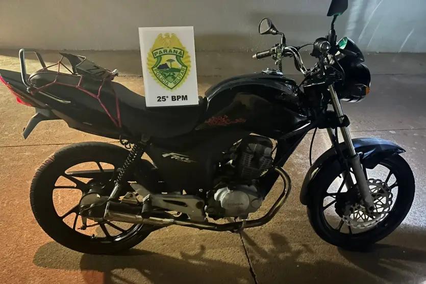 A Polícia Militar (PM) apreendeu, na madrugada deste sábado (28), uma motocicleta Honda CG 150 Fan que estava sendo utilizada para fazer manobras perigosas no Parque Bonfim, em Umuarama. A ação aconteceu após o condutor, de 20 anos, tentar fugir das equipes.
