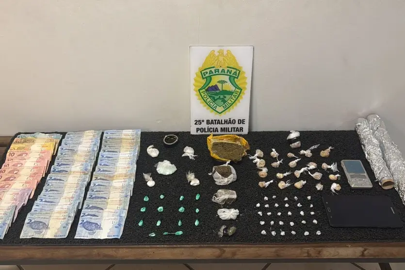 Durante a abordagem, foram apreendidos R$ 345 em espécie, além de 89 gramas de crack, 37 gramas de cocaína e 214 gramas de maconha. Na residência deles, a polícia também encontrou materiais utilizados no preparo e na distribuição das drogas, incluindo dois rolos de papel alumínio, dois rolos de fita isolante, uma balança de precisão, um tablet e dois aparelhos celulares.