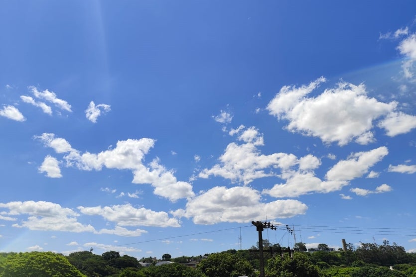 Na segunda-feira (30) Umuarama deve ter temperatura mínima de 20ºC e máxima de 32ºC, com céu claro. A meteorologia informa que a segunda será um dia bem típico da estação do verão no Paraná. Durante a manhã o sol aparece com mais intensidade, favorecendo a elevação das temperaturas. Especialmente a partir da tarde, áreas de instabilidade se intensificam e provocam pancadas de chuva localizadas. Localmente as precipitações podem ser fortes, situação bem característica desta época do ano.