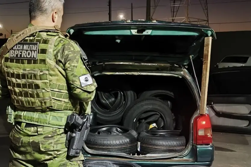 O BPFron (Batalhão de Polícia de Fronteira) apreendeu, nesta segunda-feira (30), um VW Parati que estava lotadfo com 90 pneus contrabandeados do Paraguai na PR-323, próximo de Perobal. O condutor do veículo abandonou o carro e fugiu a pé em um matagal.