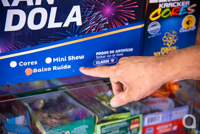 “Antigamente, tínhamos três classificações de fogos: o tiro, que era o mais barulhento; o misto, com um pouco de barulho e cores; e o de cores, que emitia pouco barulho. Agora, surgiu o conceito de baixo ruído, e temos várias opções desse tipo na loja”, contou.
