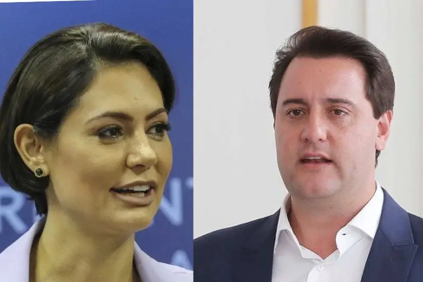 A ex-primeira dama Michelle Bolsonaro e o governador do Paraná, Ratinho Junior (FOTOS: AGÊNCIA BRASIL E AGÊNCIA ESTADUAL DE NOTÍCIAS-PR)