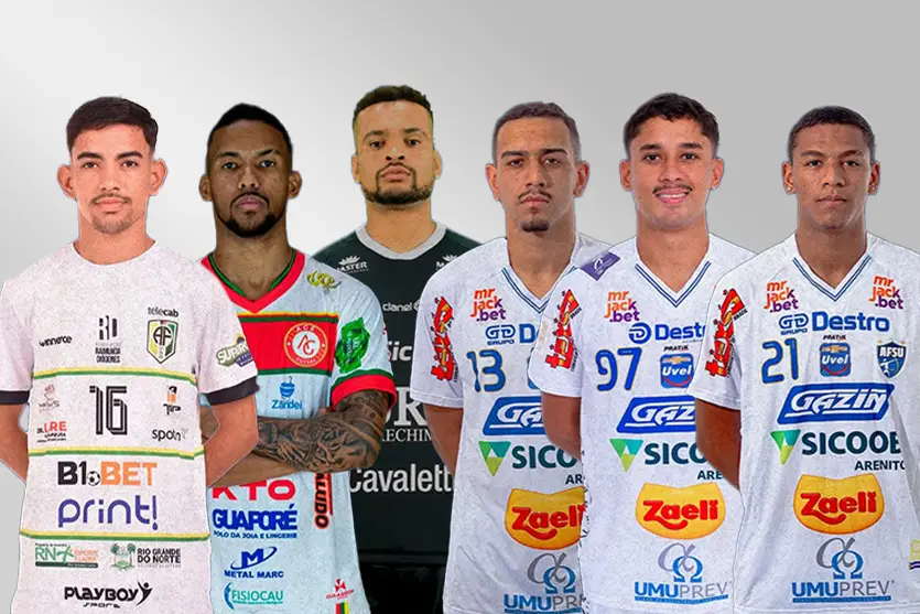 Os seis novos jogadores contratados pelo Umuarama Futsal para a temporada 2025. Foto: Reprodução/ OBemdito