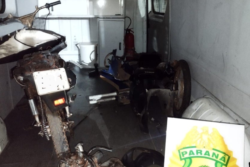 Um veículo furtado foi recuperado pela Polícia Militar na noite desta quinta-feira (9), após diligências em Porto Camargo, na cidade de Icaraíma. Em nota enviada à imprensa, a PM informou que uma equipe policial foi comunicada sobre a presença de uma motocicleta abandonada em um terreno baldio. Ao chegar ao local, os policiais encontraram diversas partes de uma motoneta Honda Biz 100, incluindo carenagens, quadro com chassi, placa e roda dianteira.