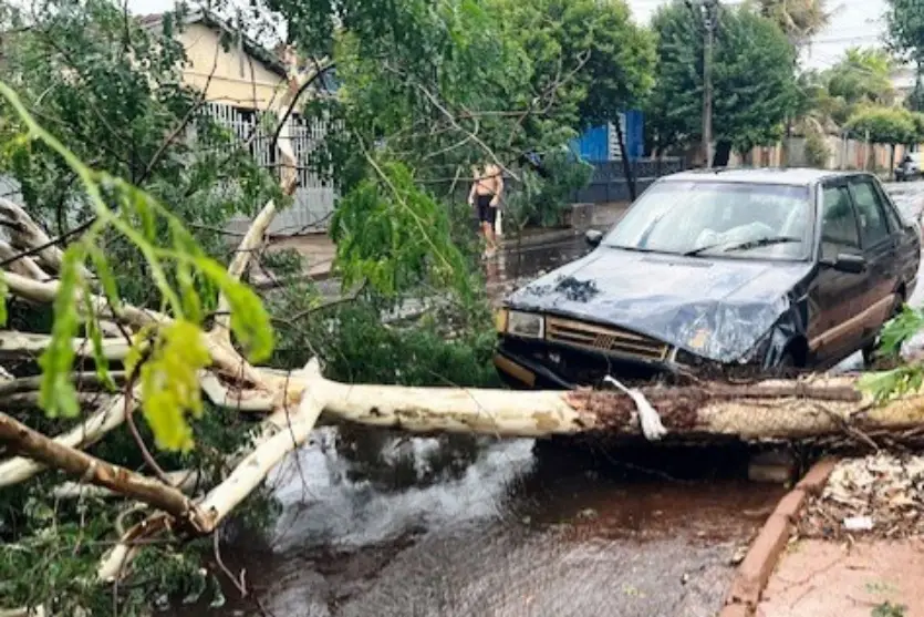No centro da cidade, a força do vento foi responsável por derrubar uma árvore que atingiu um carro na Rua Duque de Caxias, e outra que caiu sobre a cabine de uma carreta na Avenida Bento Munhoz da Rocha.