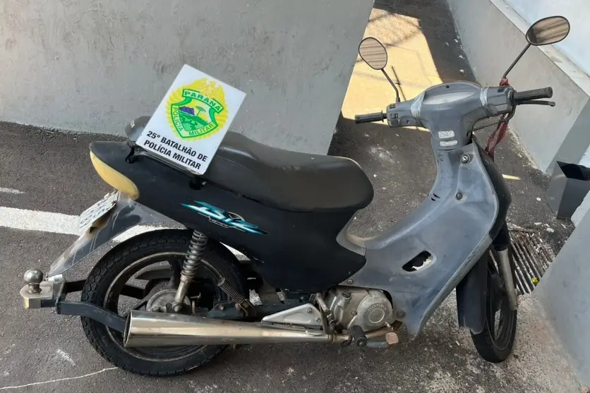 Uma Honda/Biz que foi furtada no mês de dezembro em Umuarama foi localizada nesta quarta-feira (15) pela Polícia Militar (PM). Ela estava estacionada na avenida Ângelo Moreira da Fonseca, perto do Hospital Cemil.