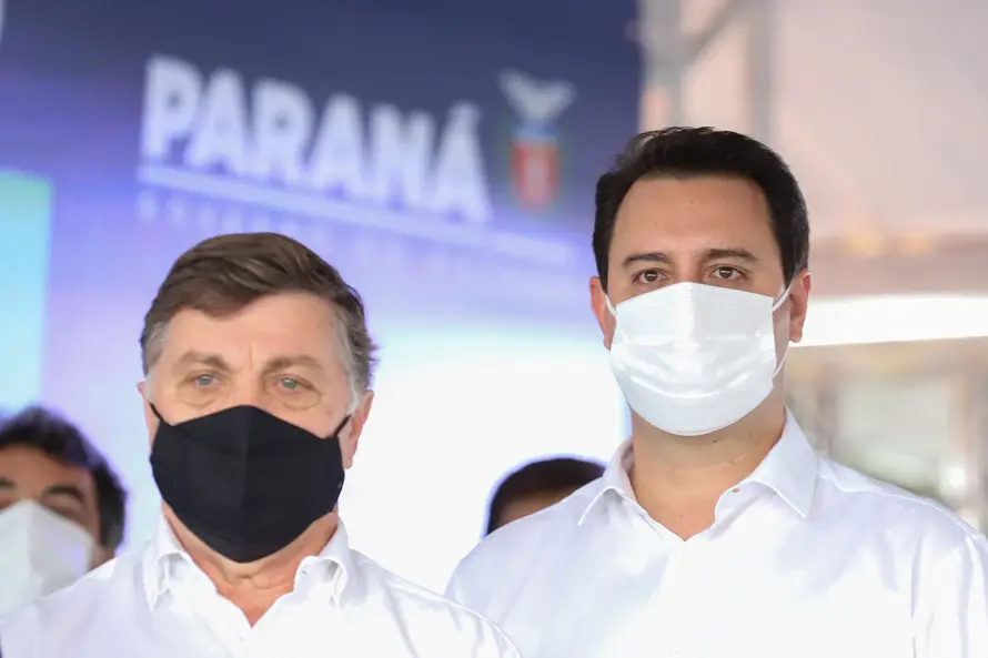 O prefeito Celso Pozzobom e o governador Ratinho, no lançamento da duplicação da PR-323 no perímetro urbano de Umuarama / Foto: Geraldo Bubniak/AEN