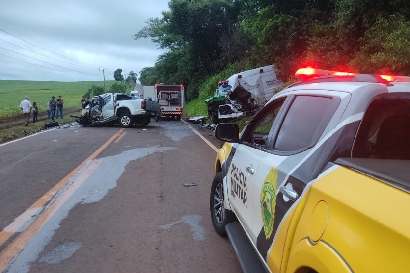 Duas pessoas morrem após colisão frontal de caminhonete e ambulância na PR-082