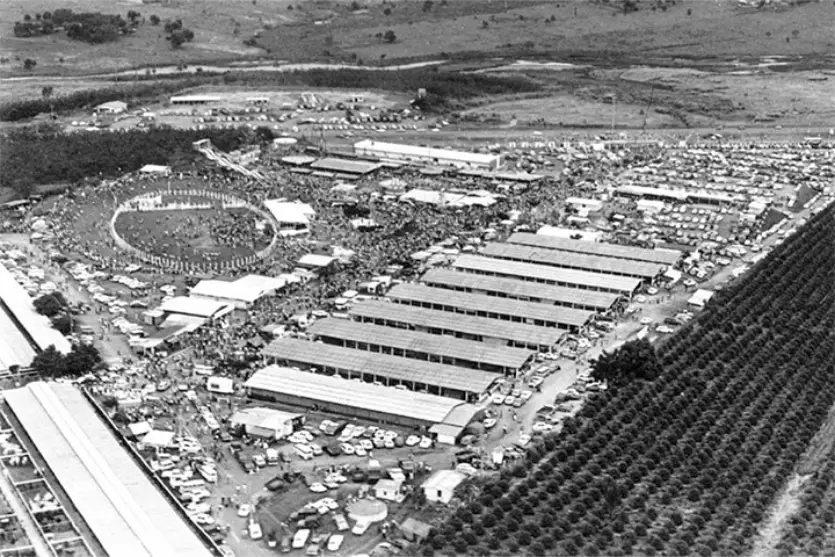 O Parque de Exposições sediando a primeira EXAPIU, em 1074. Comparado com as atuais dimensões, ele era pequeno e não possuía a modernidade e os espaços para tantas atrações como as que acontecem nos últimos tempos. - Fotos: Acervo Italo Fábio Casciola