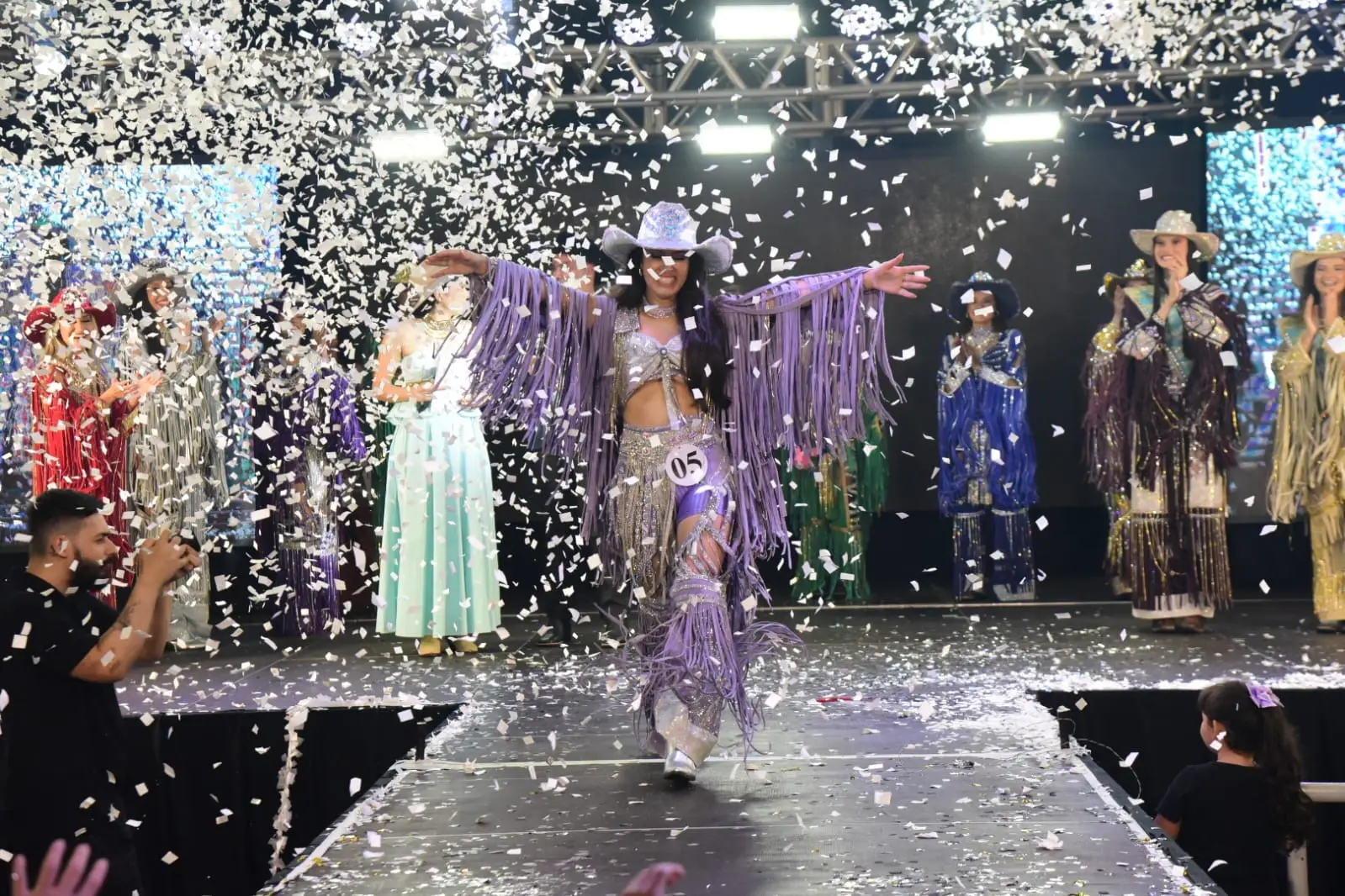 Cada uma das nove beldades levou muito mais que o estilo country à passarela. Elas não pouparam em criatividade. Asas se acenderam diante do público. O berrante foi tocado de verdade por… uma linda mulher.