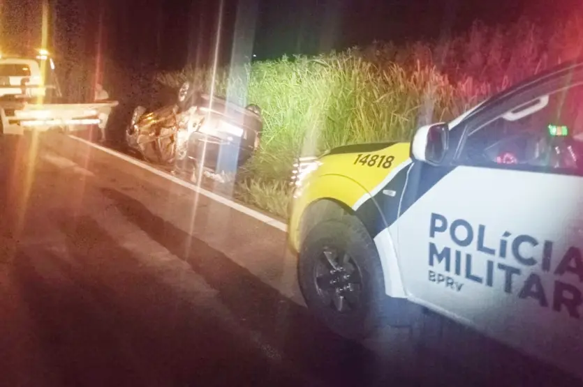 A polícia rodoviária informou que chovia forte no momento em que aconteceu o capotamento em Mariluz, que deixou duas pessoas feridas