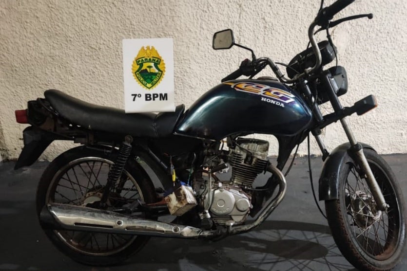 A polícia apreendeu a moto, que estava sem um dos retrovisores, placa e luzes traseiras. A identificação foi possível pelo número do motor e do chassi, e o veículo foi levado para o destacamento policial.