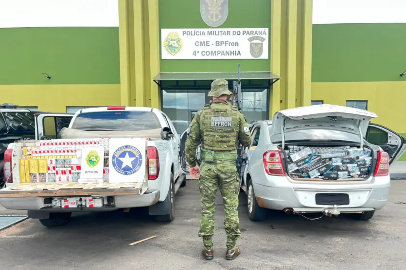 Foi realizada a busca pessoal nos condutores e nada de ilícito foi encontrado. No entanto, na inspeção na caminhonete e no carro foi confirmado que ambos estavam carregados com aproximadamente 3.500 pacotes de cigarros de origem paraguaia.
