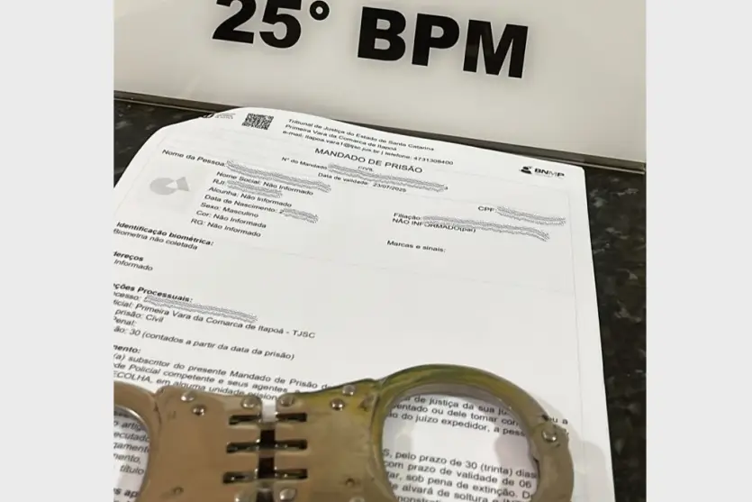 O homem foi informado sobre o mandado expedido por falta de pagamento de pensão alimentícia pela 1ª Vara da Comarca de Itapoá/SC. Ele recebeu voz de prisão e foi orientado sobre seus direitos constitucionais. Por fim, o indivíduo foi encaminhado para o Depen (Departamento Penitenciário) de Iporã, sem o uso de algemas.