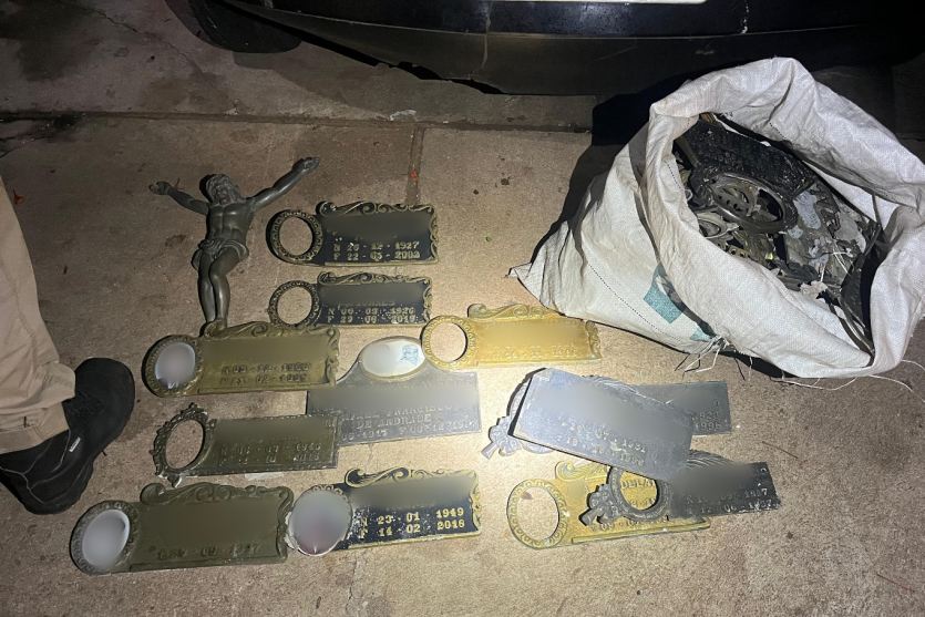 Dois homens desembarcaram do automóvel e correram para uma área de mata fechada, conseguindo escapar. No interior do veículo, os policiais encontraram quatro estátuas religiosas e um saco contendo diversas plaquetas de metal com identificação de pessoas falecidas.